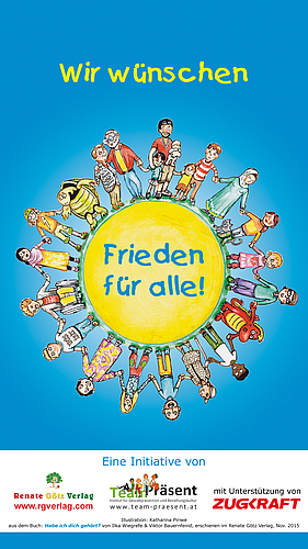 Sonderbar, wie Ereignisse zusammenfallen. Gerade in der Woche in der unser Buch "Habe ich dich gehört?" zum Thema Beziehungskultur erscheint, schockieren Terroranschläge in Paris die ganze Welt und tausende Menschen frieren täglich auf der Flucht vor Krieg und Verfolgung. Wir hatten sofort die Idee, angesichts der Ereignisse ein bestimmtes Bild, ein Friedensbild aus dem Buch in den öffentlichen Raum zu setzen und es ist uns gelungen. Vom 30.11.2015 bis zum 13.12.2015 erscheint dieses Bild auf allen Infoscreens am Westbahnhof und in der Shopingmall alle sechs Minuten für 10 Sekunden zwei Wochen lang. Wir freuen uns riesig die Partner gefunden zu haben, welche uns das möglich machen, den Renate Götz Verlag und die Zugkraft GmbH. Setzen wir Zeichen des Friedens!