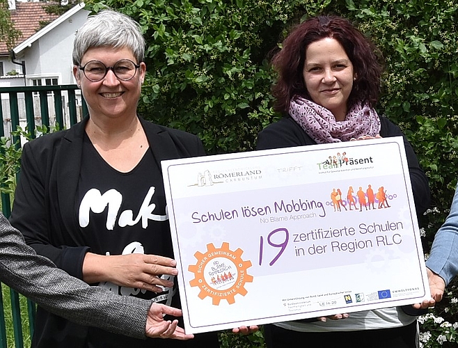 Wir freuen uns über das Projekt, welches wir gemeinsam mit dem Römerland Carnuntum und den Schulen der Regiom umsetzen konnten. Als erste Stadt in Österreich sind alle Schulen der Stadt Bruck an der Leitha und insgesamt 19 Schulen der Region nun "Sicher gemeinsam" - zertifiziert und haben an der Schule Lehrkräfte, die im Fall von Mobbing mit dem No Blame Approach intervenieren können.