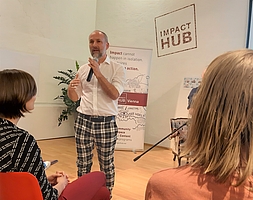 Ilka Wiegrefe erzählt am 16. Mai 2017 den VertrauenslehrerInnen beim Jahresabschluss der SchülerInnen - Mitgestaltung / SMG in Kooperation mit Wien X-tra über Empathie und Beziehungskultur. Mit dabei Stadtrat Jürgen Czernohorsky und der Präsident des Stadtschulrates Mag. Himmer.