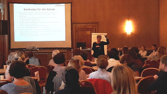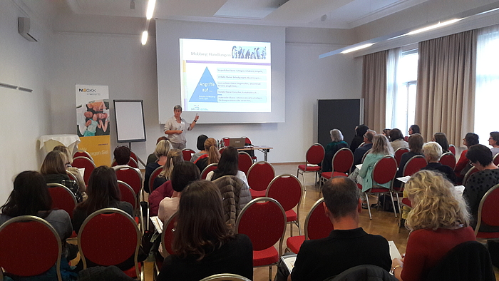 "Kommunikation auf Augenhöhe - wertschätzend, gewaltfrei - Beziehungskultur in der Schule" war das Motto der Tagung der "Gesunden Schule" am 18.10.2017 in St.Pölten. Wir waren mit einem Infotisch und Ilka Wiegrefe mit einem Vortrag zum Thema "Mobbing und der No Blame Approach" dabei.