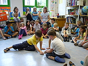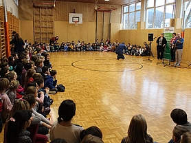 In der Volksschule Bad Vöslau haben wir Ende 2016 in jeder Klasse unser Projekt "Habe ich dich gehört?" durchgeführt! Insgesamt 12 Schulklassen haben das dazu passende Schulbuch erhalten um damit weiter zu arbeiten. Beim gemeinsamen Abschluß im Turnsaal war die die Begeisterung wirklich berührend - über 200 Menschen, die Verbindung erleben.
