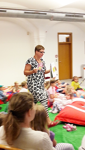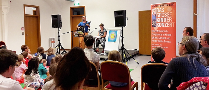 das Kinderhausteam und die Kinderhauskinder möchten uns nochmals bedanken, dass du mit Elke bei uns im Kinderhaus euer Projekt "Schau, ein Lied! Kinder erleben Gebärdensprache" vorgestellt hast. Für unsere Kinder und auch für uns Pädagoginnen war das Konzert sehr spannend, es war toll, die Lieder zu hören und zu sehen! Das Programm war für unsere Kinder im Alter von 3 bis 5 sehr stimmig, alle Kinder waren sehr gespannt und viele haben auch gleich mitgemacht.