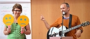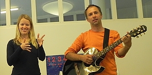 Viktor Bauernfeind bringt die Anwendung seiner "Win Win Lieder" im Schulalltag, sowie seinen Zugang zur Vermittlung des Themas Gebärdensprache und Gehörlosigkeit gemeinsam mit der Gebärdensprachdolmetscherin Elke Schaumberger näher.