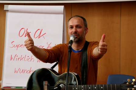Ebenso erfrischend waren Viktors Vorträge zu den "Win Win Liedern". Wie angekündigt hier nun der "Gewinner Gewinner Song" mit Text und Gitarregriffen: hier. Die Melodie dazu ist auf diesem mp3file. Entnommen ist dieser Track Viktor Bauernfeinds Tonträger "Win Win Lieder", erschienen auf schlau records.